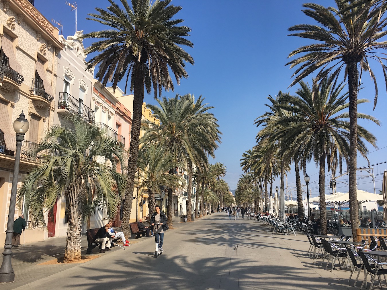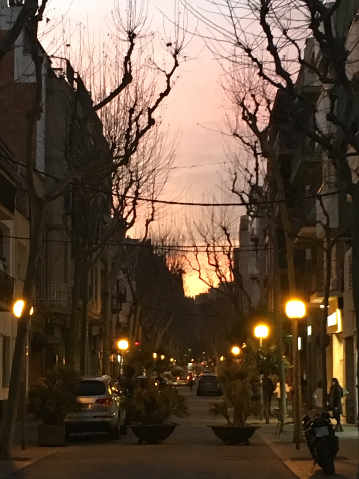 Looking west and up the street from the corner of the Hotel Miramar in Badalona.
